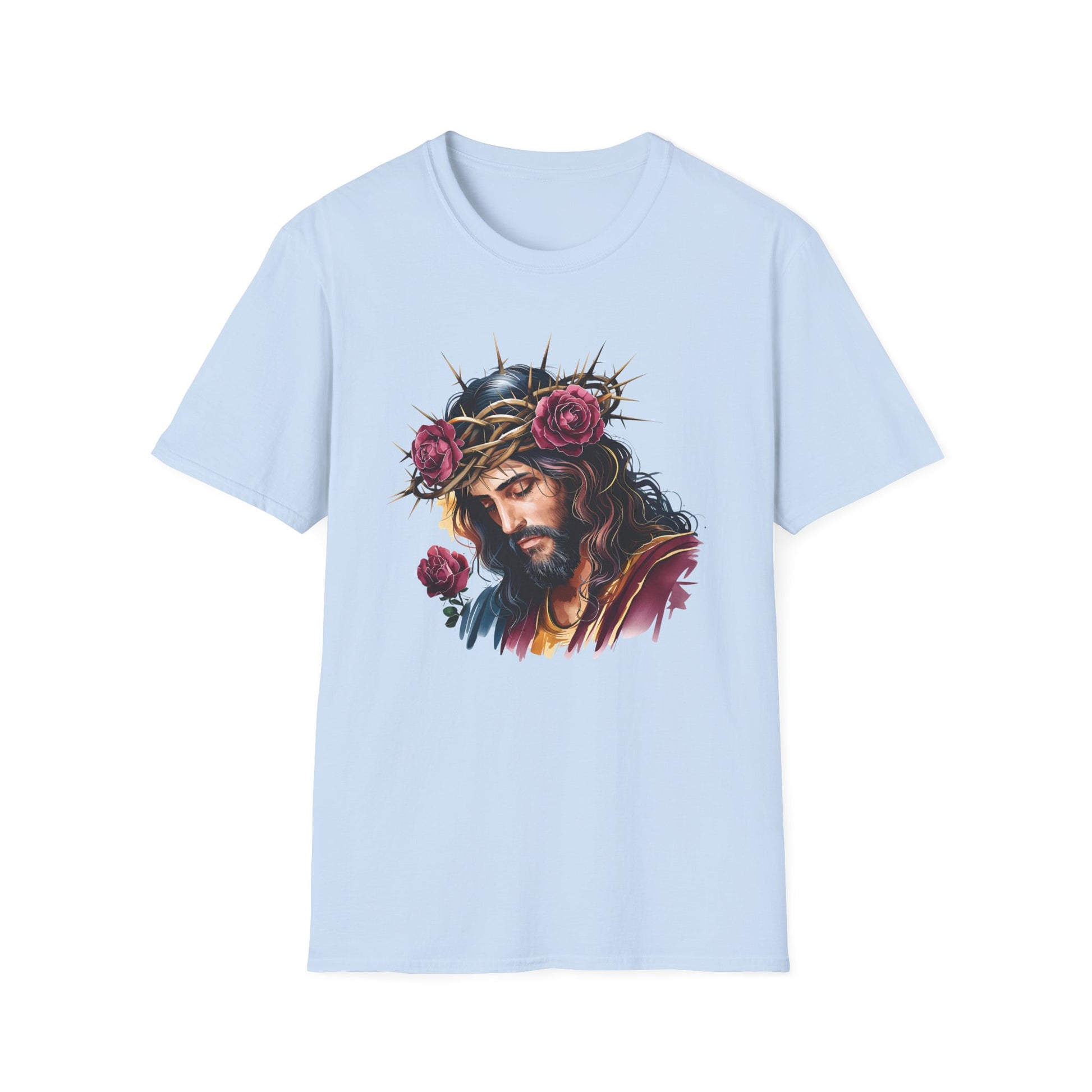 Artistic & Profound Design: The stunning, painterly graphic blends the crown of thorns with blooming roses, creating a powerful visual of sacrifice and redemption that will spark meaningful conversations.